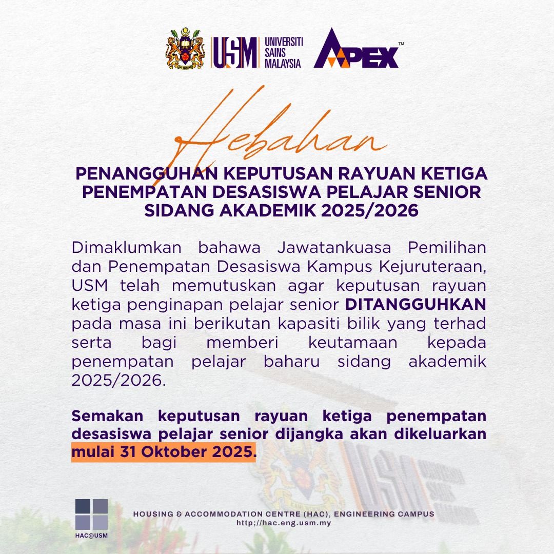 Check in often to keep up with the newest happenings at HAC, USM Engineering Campus!